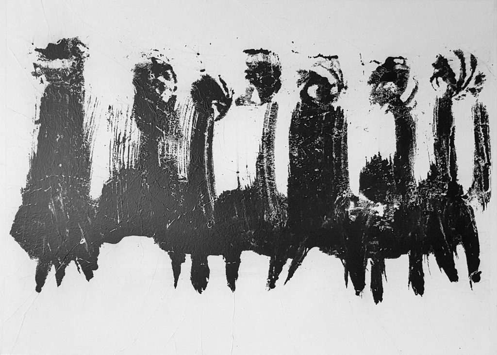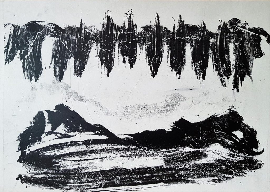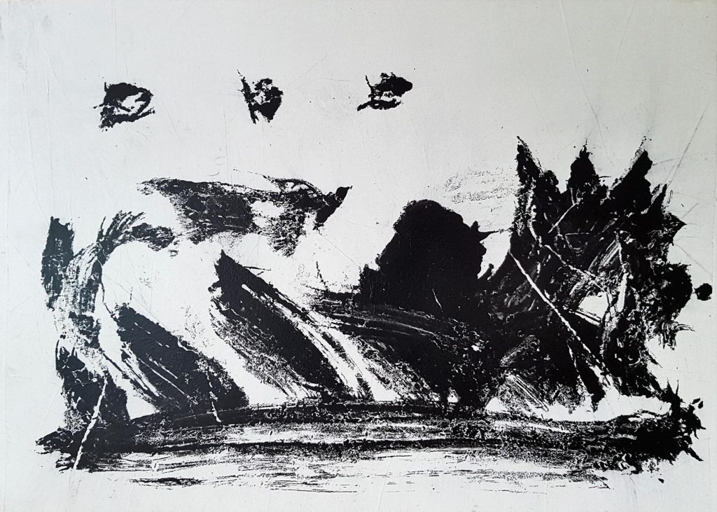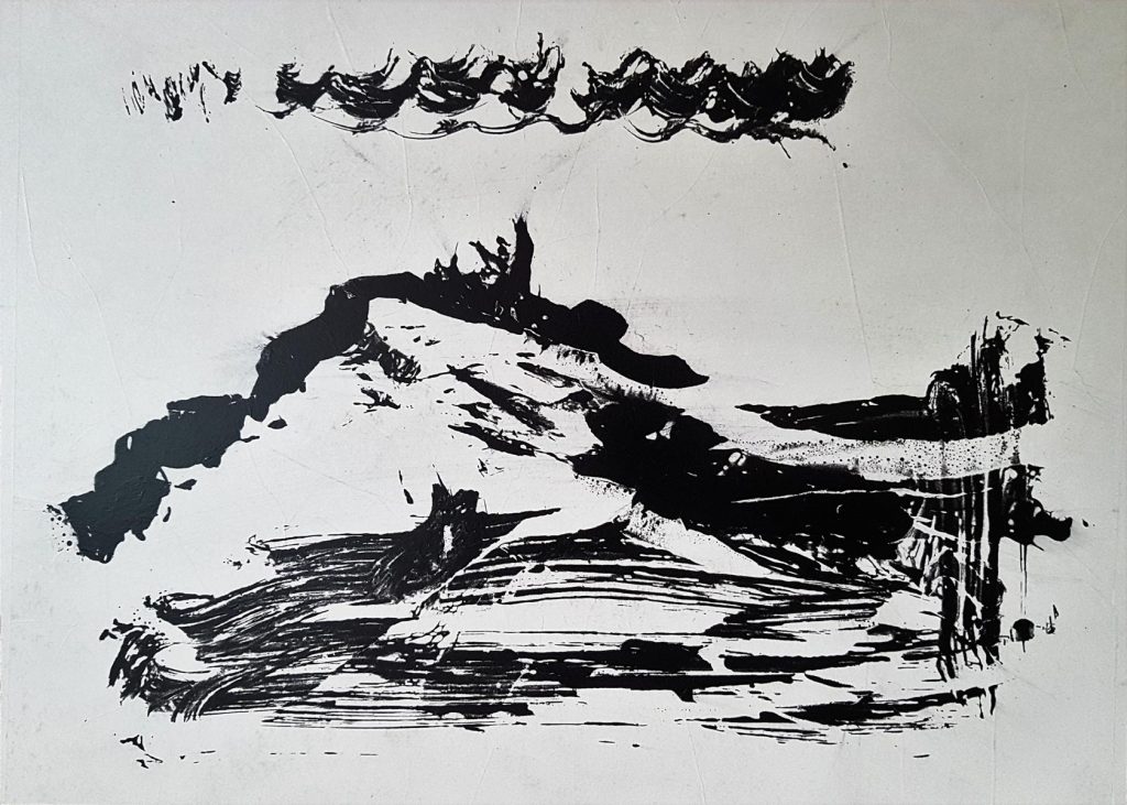 Pigment-Tusche auf Japanpapier, aufgezogen auf HF-Platte